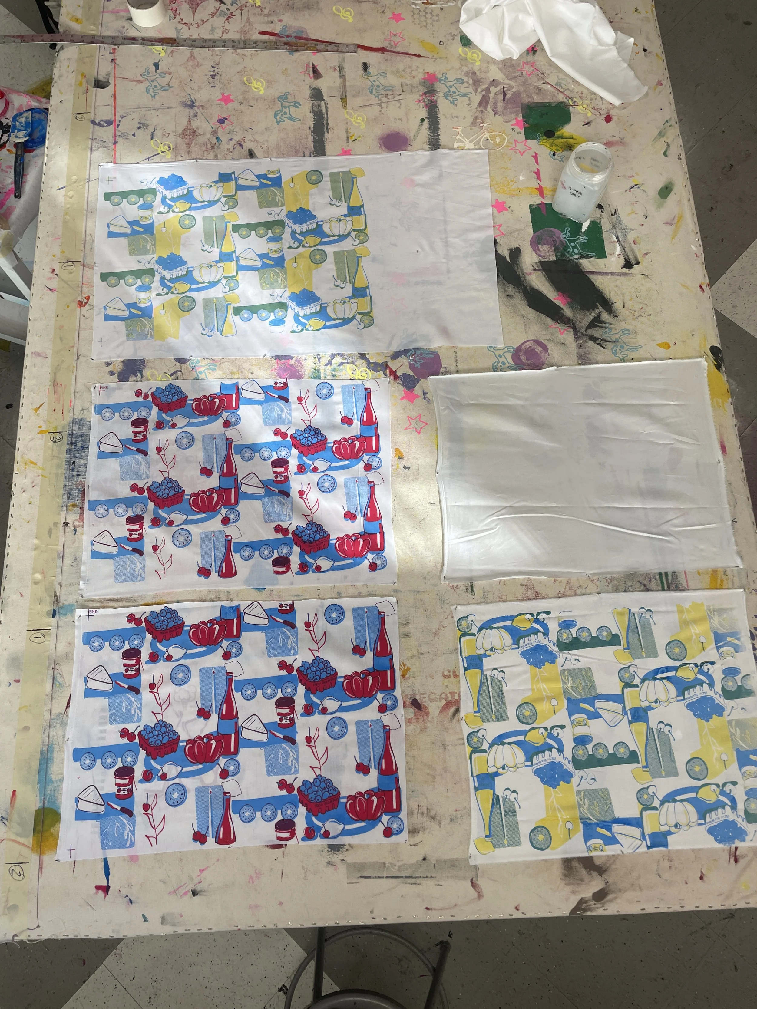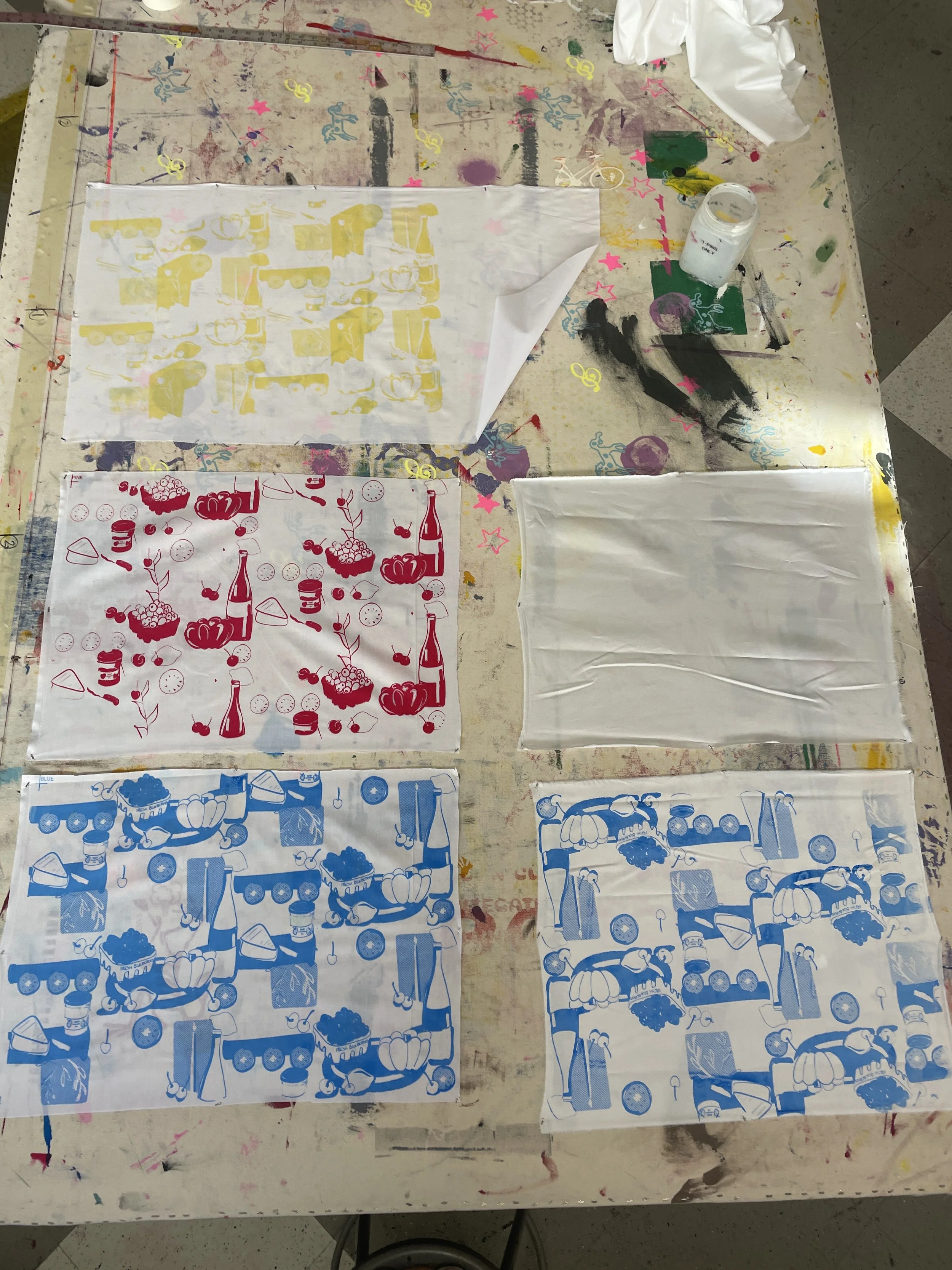 Color tests - figuring out which order to layer the colors. My favorite was red/pink, blue, then yellow to top it off.