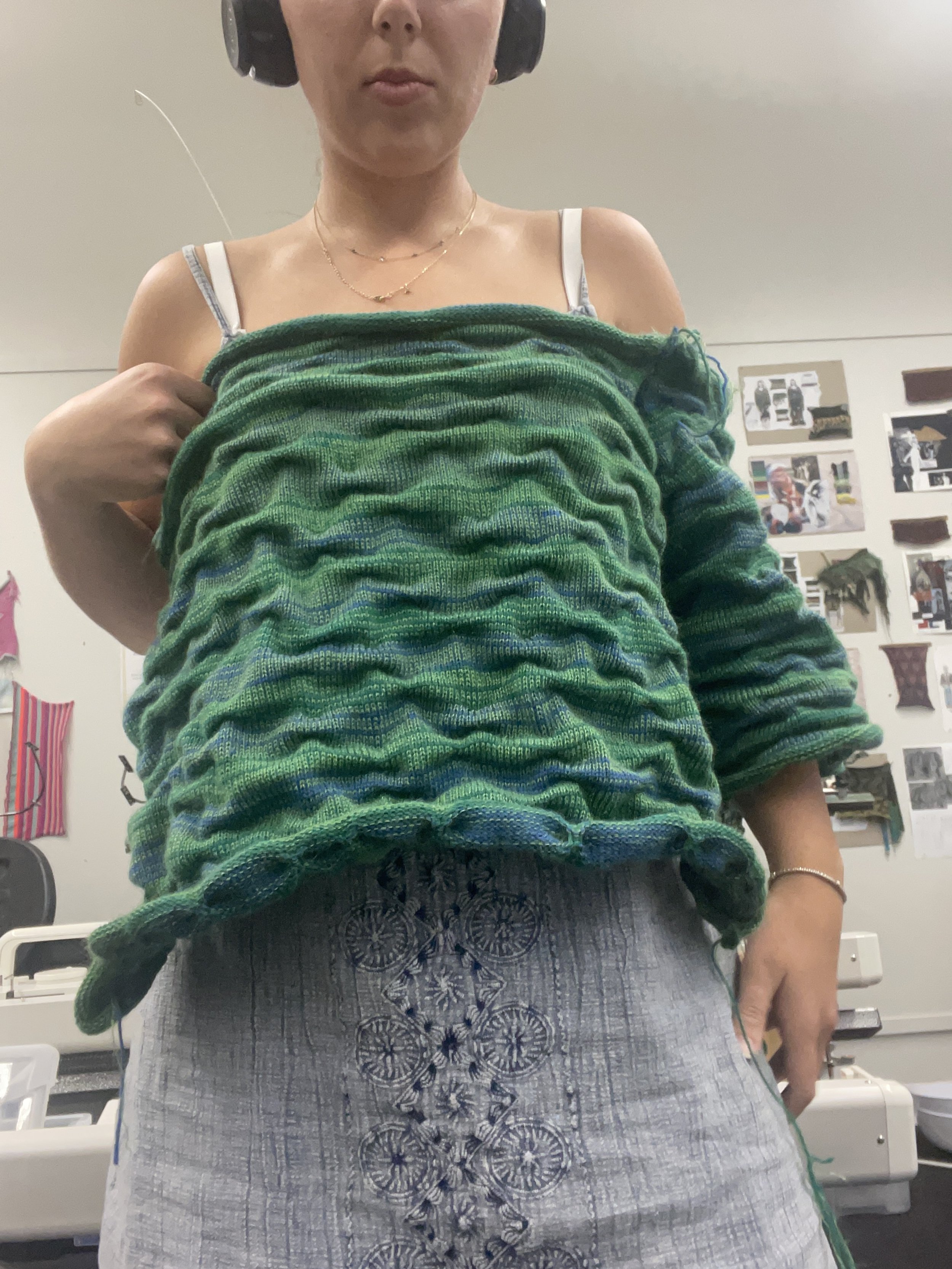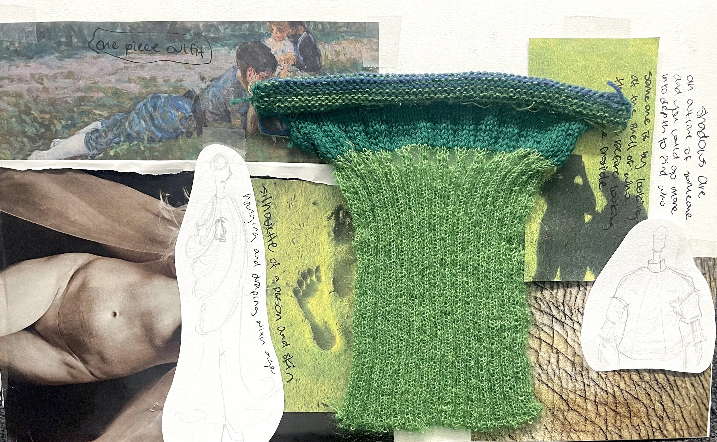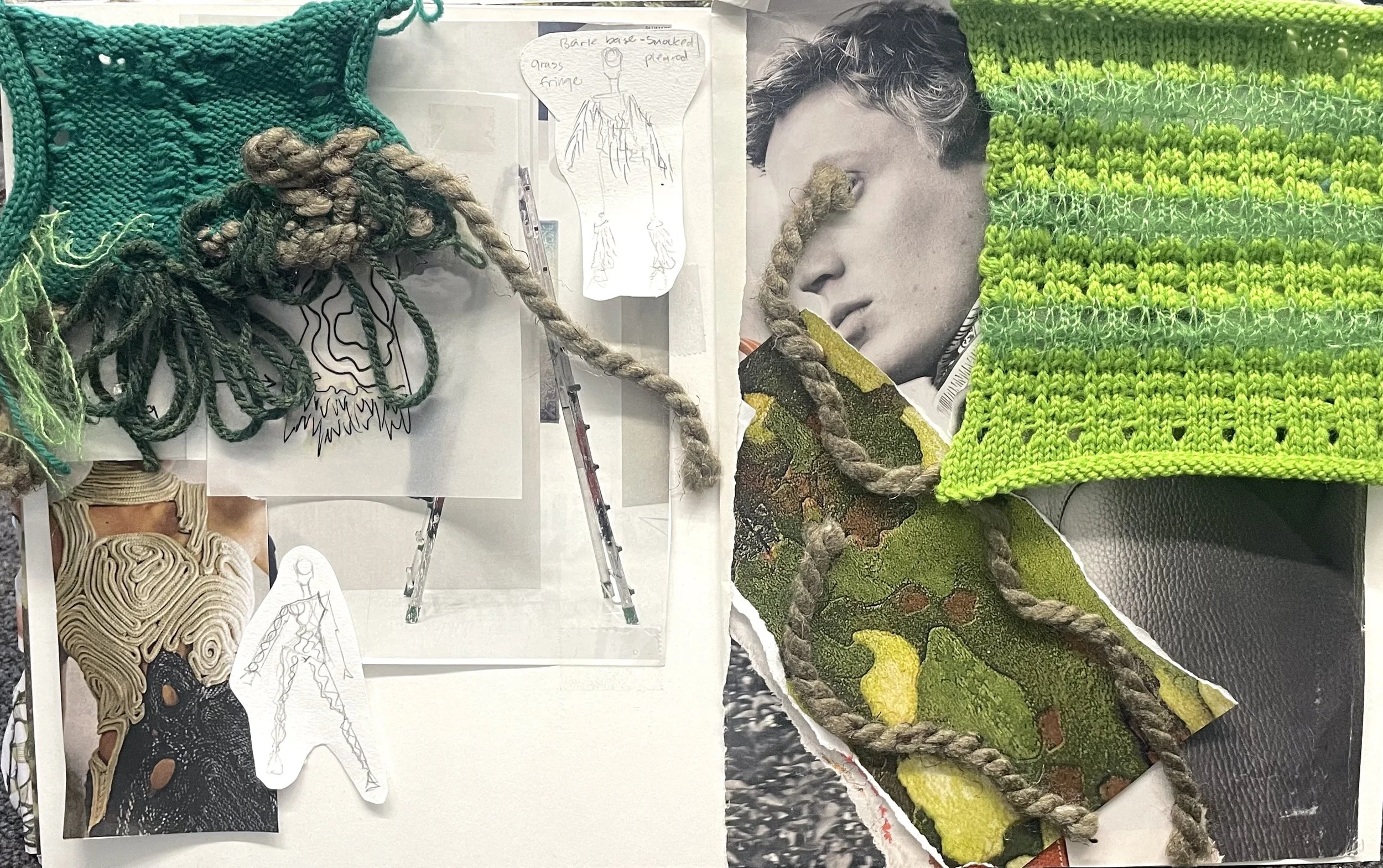 Process 2 - double bed rib knit mimicking stretched skin and wrinkles found as we age with the Earth and nature in the circle of life.