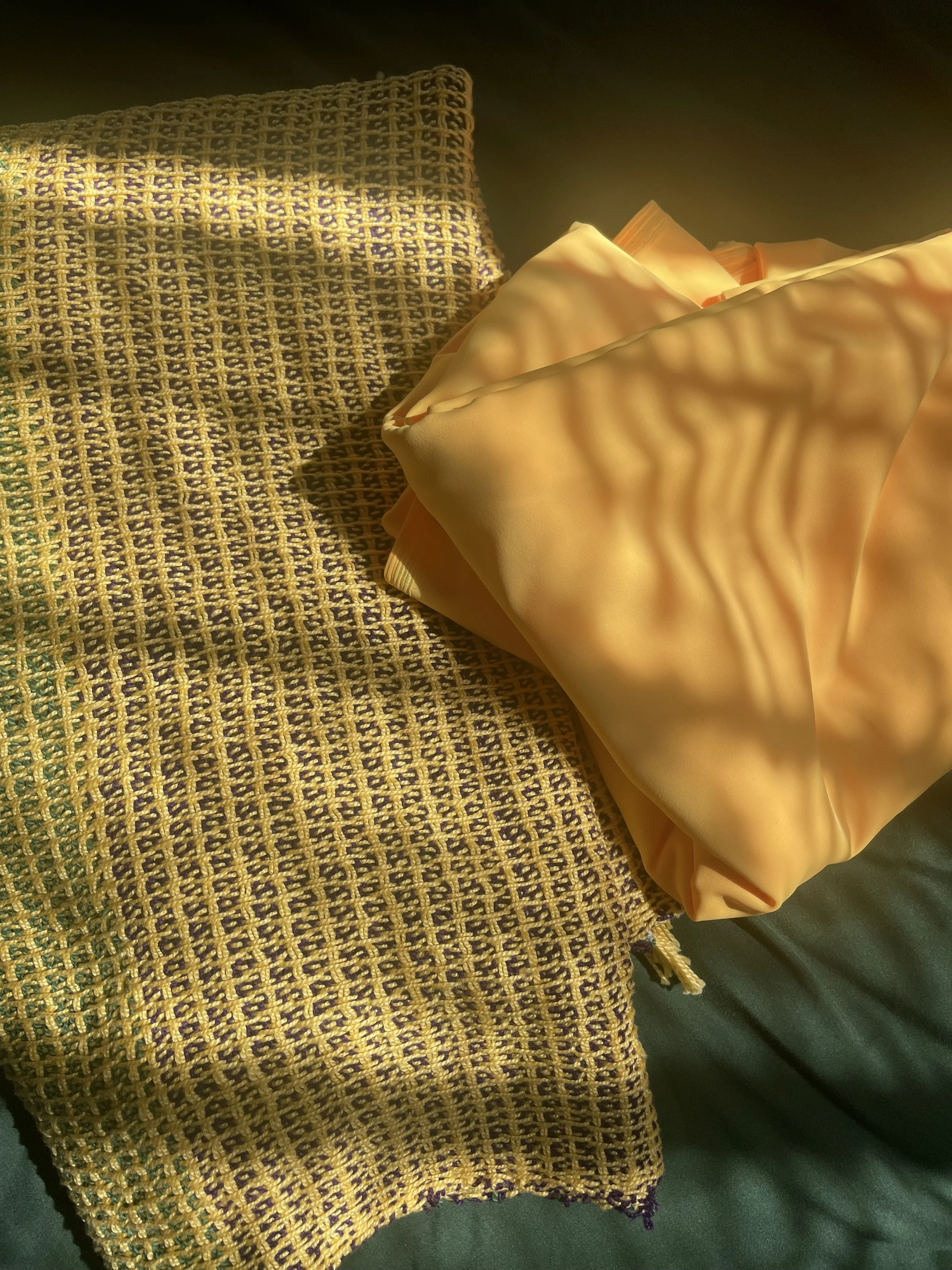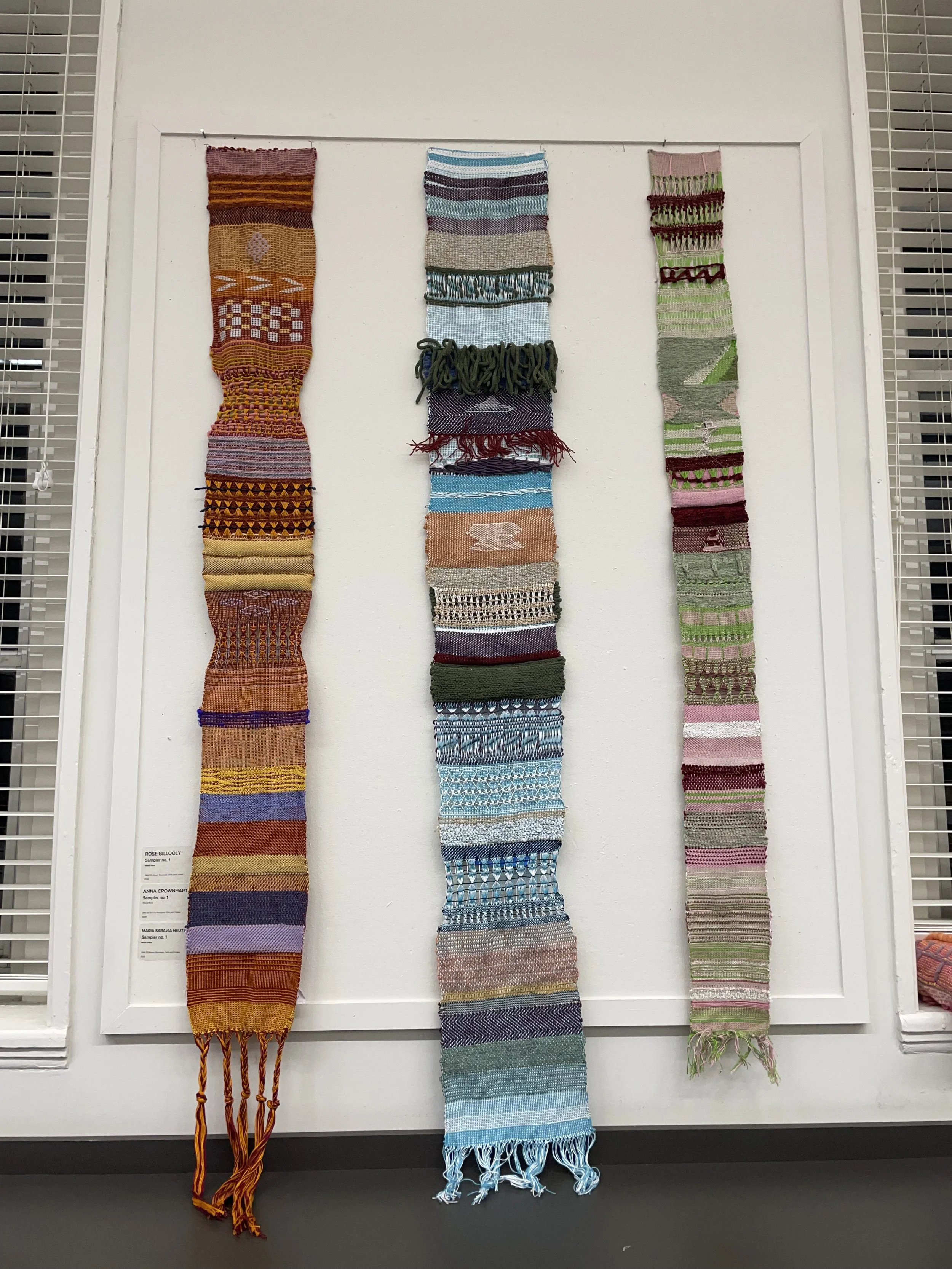 Weaving on the large weaving machines has been one of my favorite process to learn so far. So many measurements and steps to set up before the weaving starts is the longest part. Each part releases stress and as you see your pattern come along, it feels so fulfilling. It’s a process that I would love to use in the future in my designing.